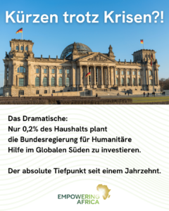 In einer Welt voller Krisen, kürzt die Bundesregierung die Mittel für humanitäre Hilfe auf nur noch 0,2% des Bundeshaushalts. Das ist der absolute Tiefpunkt seit einem Jahrzehnt.
